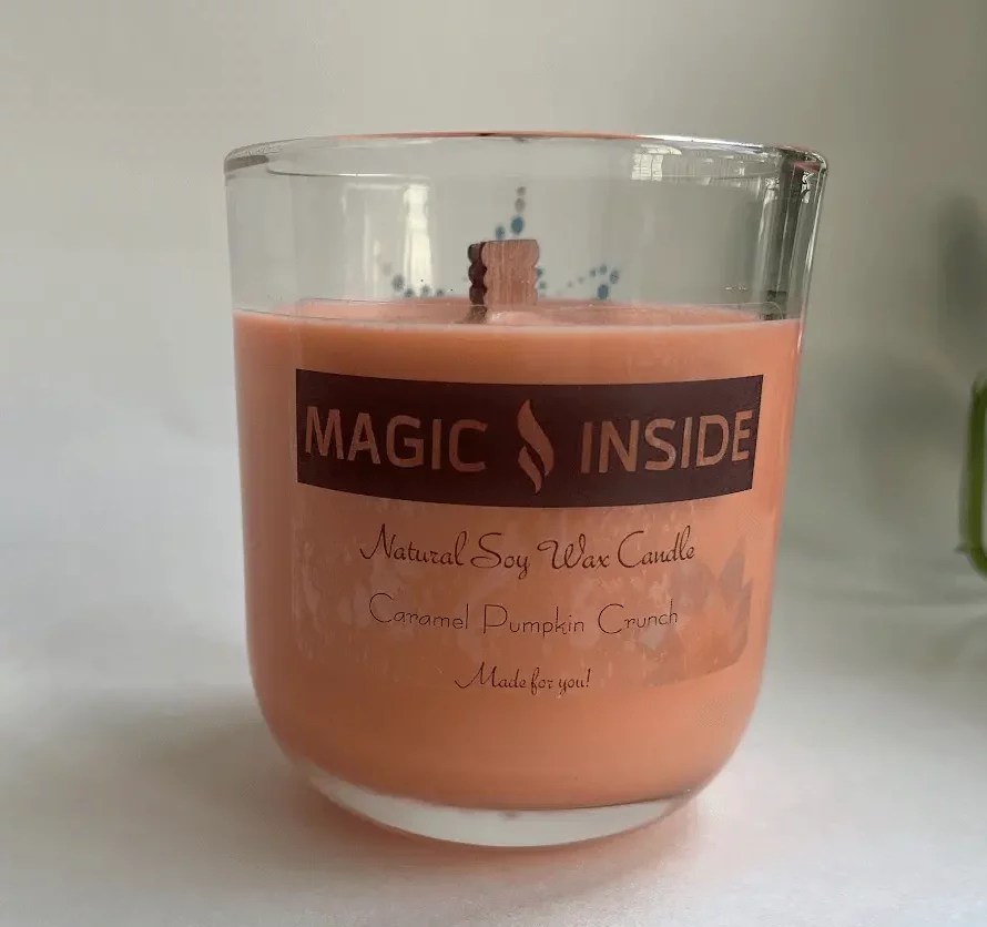 All natural soy candle in a transparent glass Sonoma Tumbler Jar. Wood wick crackles gently when burned and melts fragrance through the air. Biodegradable glitter in each candle!